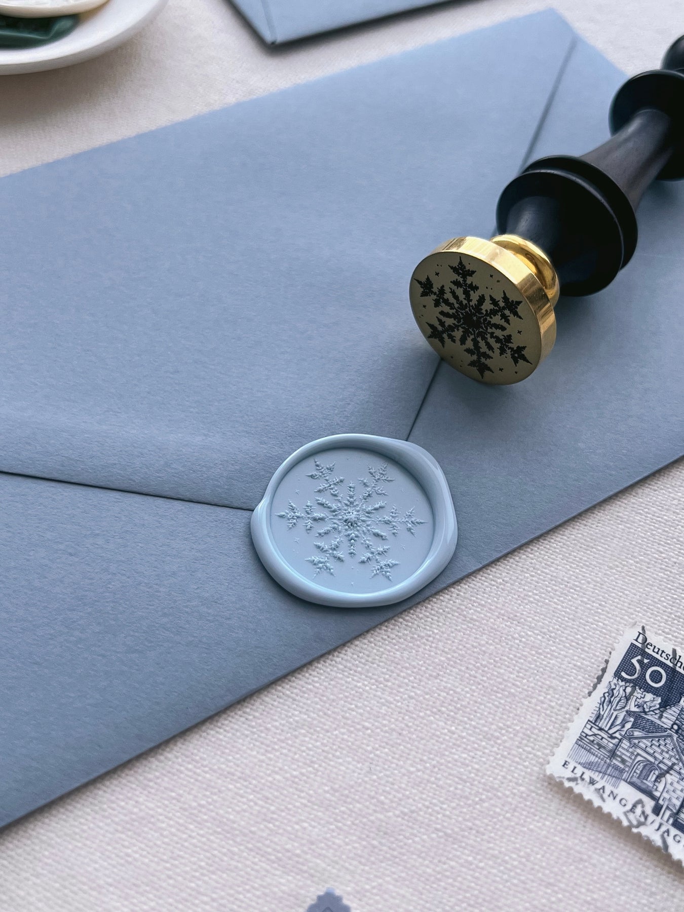 Capture the magic of winter with this intricately detailed snowflake wax seal stamp. Delicate, symmetrical, and timeless, it's the perfect finishing touch for winter weddings, holiday cards, and seasonal gift wrapping.