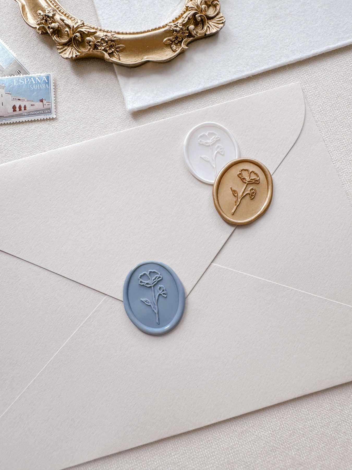 The Oval Flora Wax Seal Stamp makes the perfect adornment for adding a romantic touch to your wedding invitations, any stationery and projects. It features a delicate hand-drawn flower design that is minimal and versatile, suitable for various wedding themes and occasions.