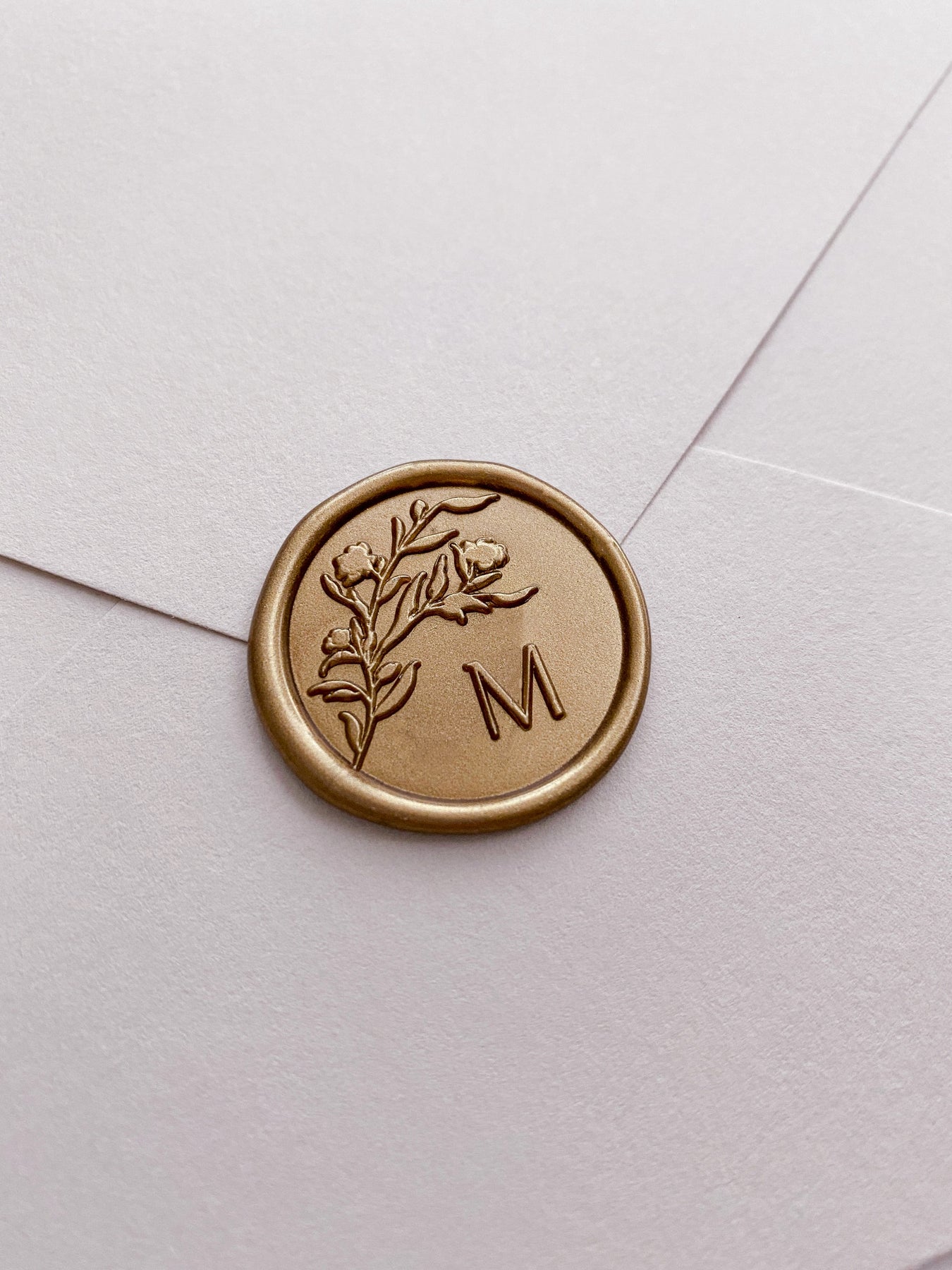 This monogram wax seal stamp features a unique floral design, is the perfect addition for your wedding invitations and day-of stationery. Customize your single initial or two-letter monogram selecting from a variety of modern and classic typeface fonts or calligraphy script for a romantic and refined design.