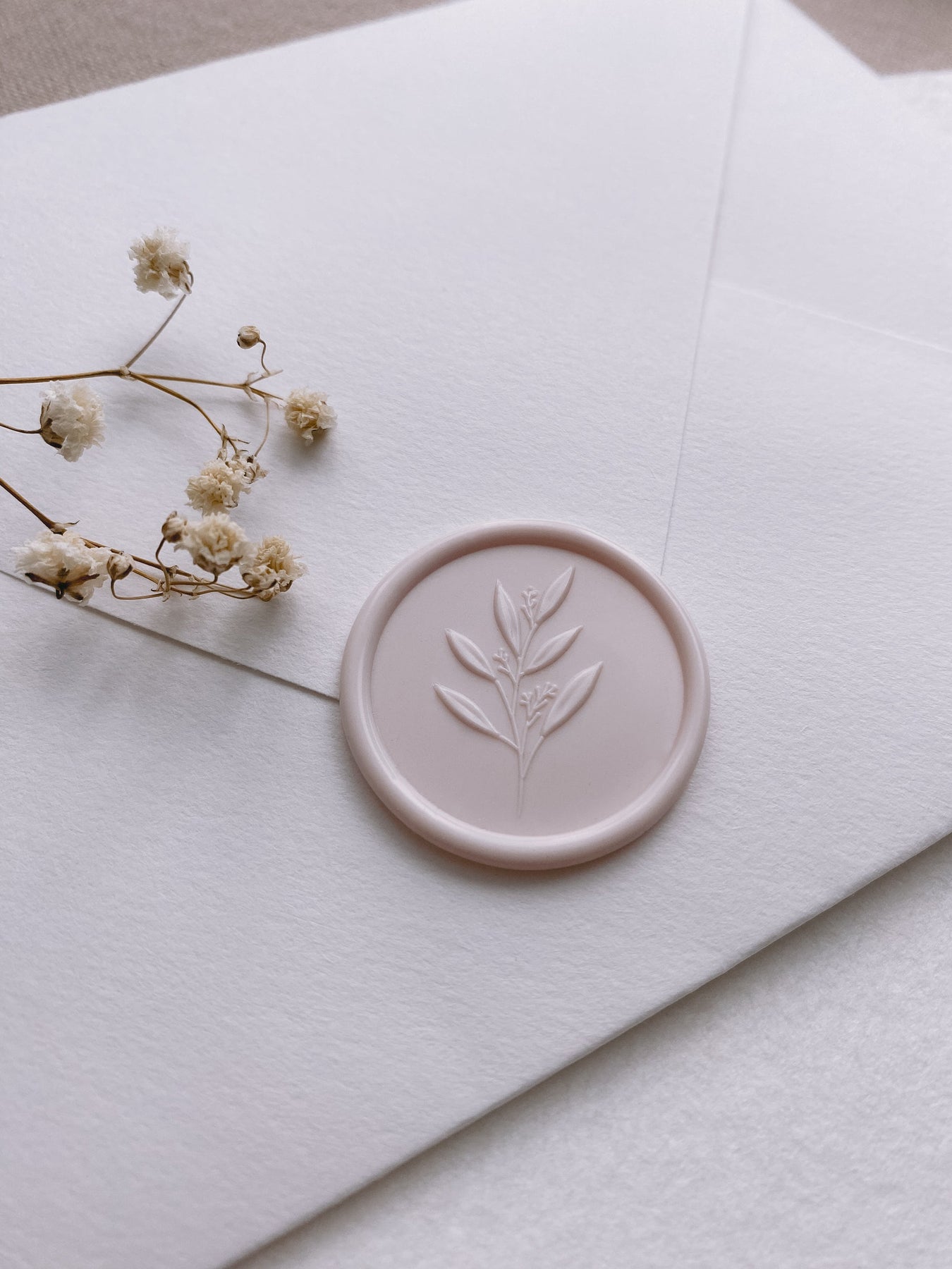 This 3D Leaf Branch Wax Seal Stamp features a minimal leaf design, is the perfect way to add a timeless botanical touch to invitations for your outdoor wedding or stationery for any special occasion.