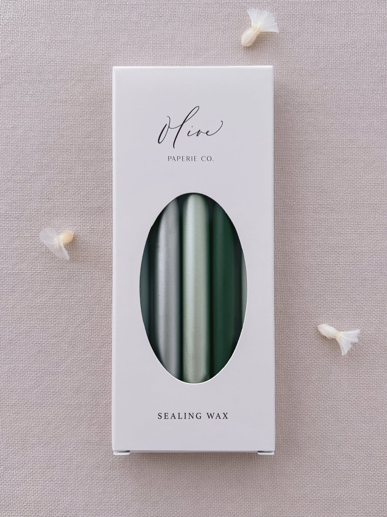 Our Green & Silver Sealing Wax Stick Sampler features a beautifully curated green palette, perfect for wedding invitations, event stationery, festive crafts, Christmas cards, and gift wrapping.
