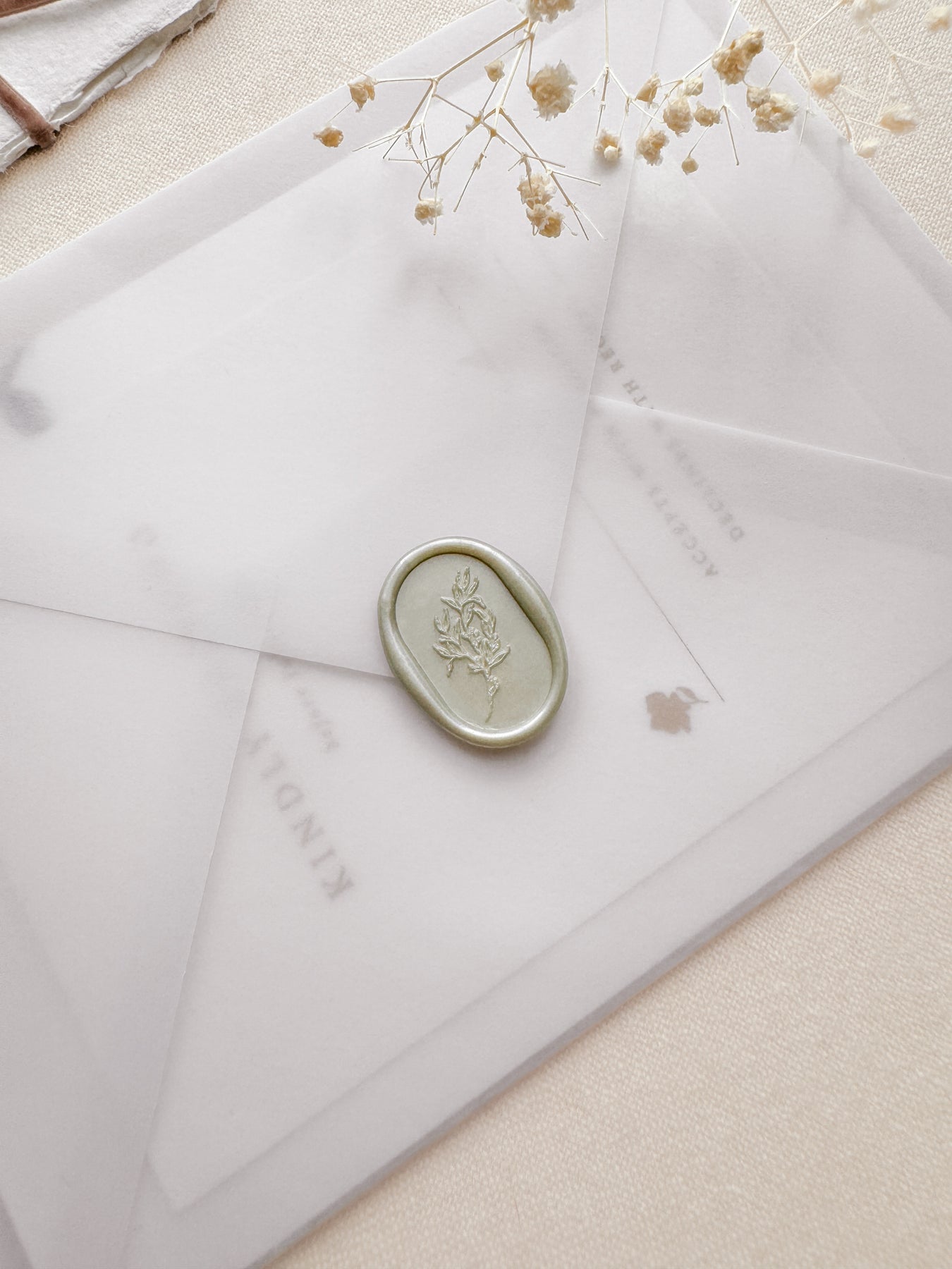 Our Silver Sage sealing wax sticks are available in sets of 5 or 10. These glue gun sealing wax sticks are perfect for projects such as wedding invitations, wedding day stationery, brand packaging, craft projects and more.