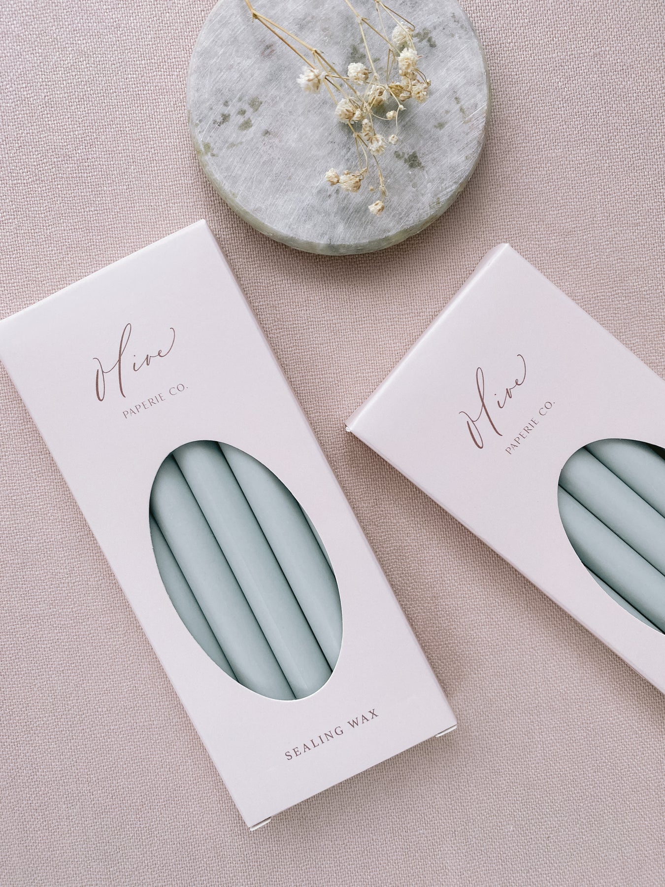 Our Eucalyptus Sealing Wax Sticks are available in sets of 5 or 10. These glue gun sealing wax sticks are perfect for projects such as wedding invitations, wedding day stationery, brand packaging, craft projects and more.