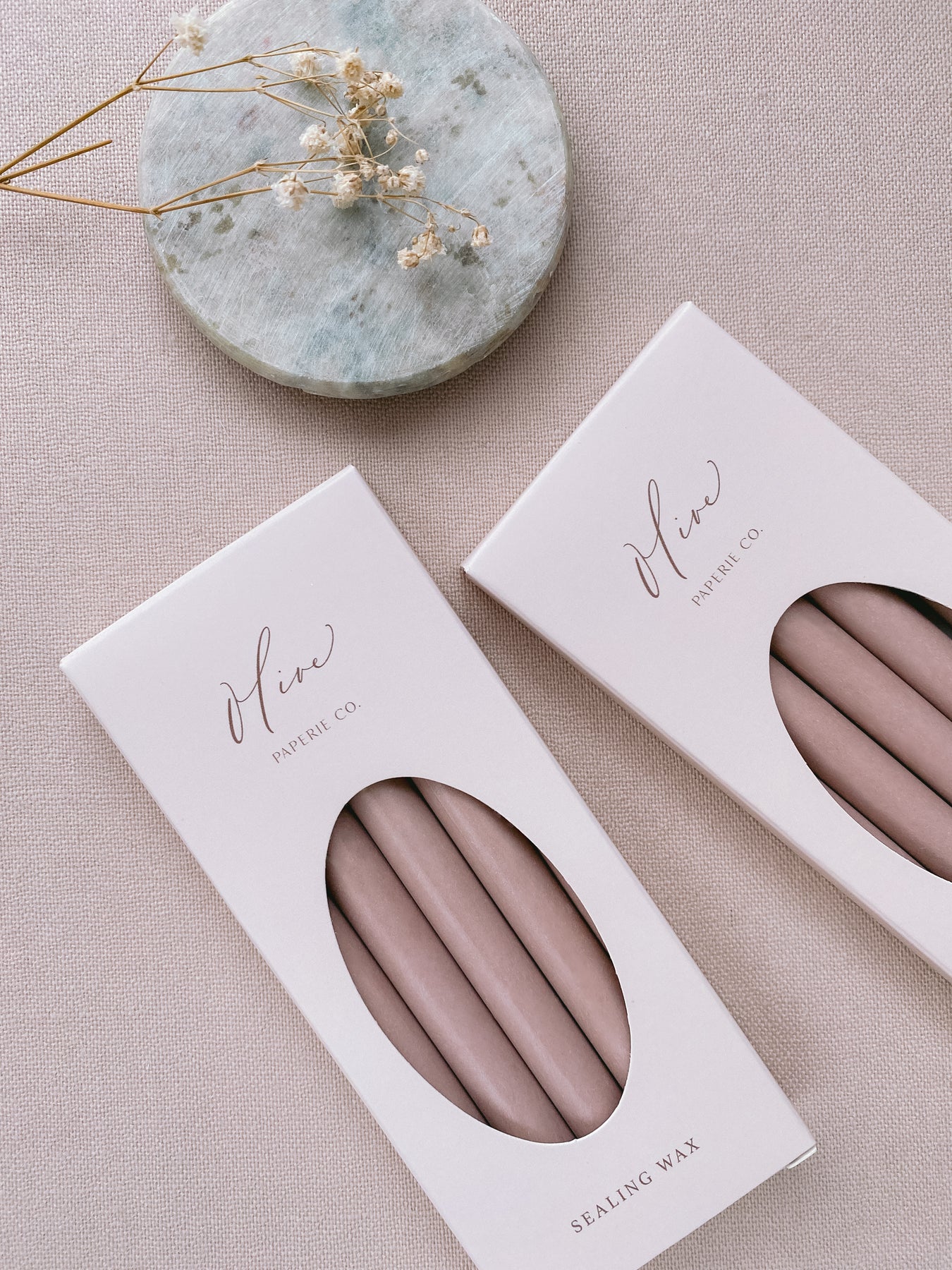 Our Nude Brown Sealing Wax Sticks are available in sets of 5 or 10. These glue gun sealing wax sticks are perfect for projects such as wedding invitations, wedding day stationery, brand packaging, craft projects and more.