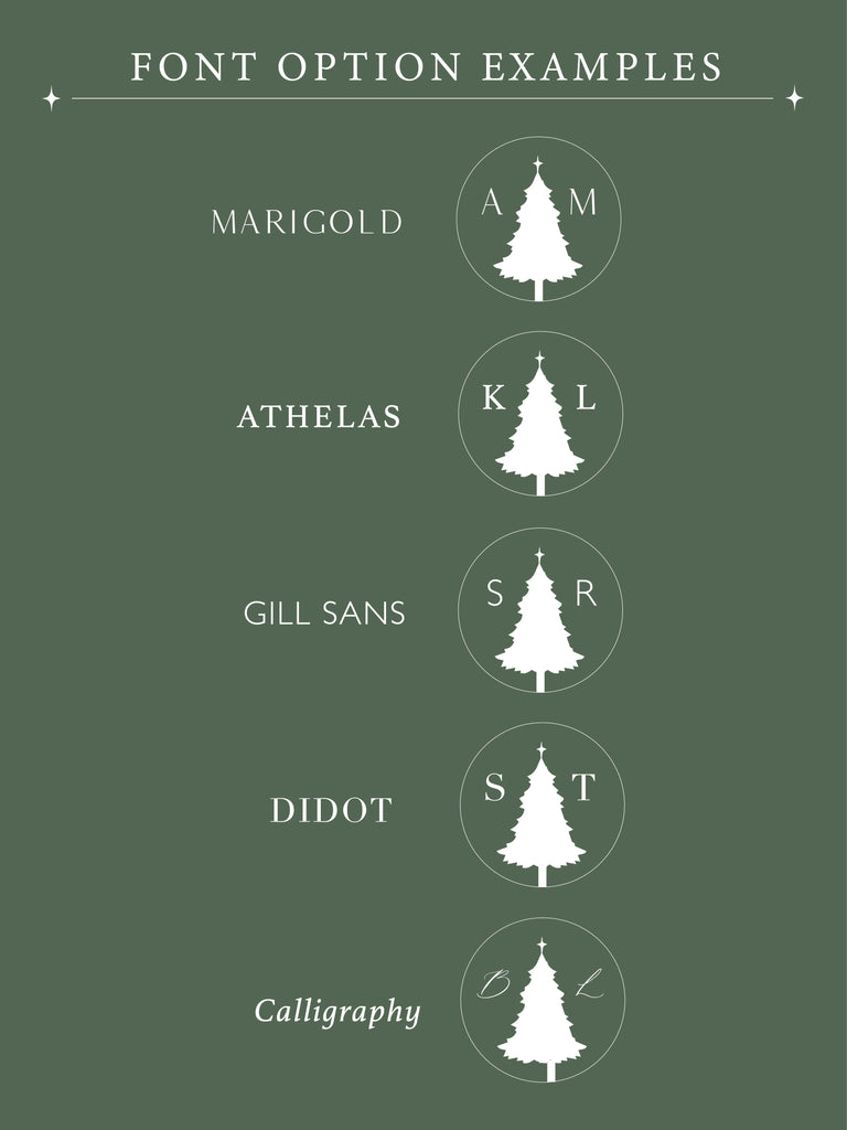 Christmas Tree monogram wax stamp font options
