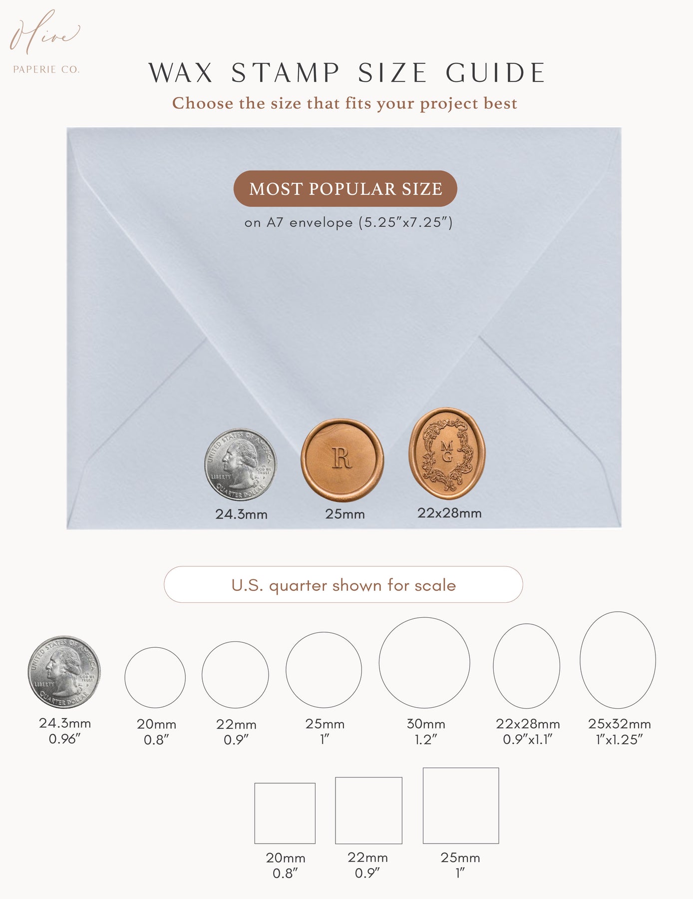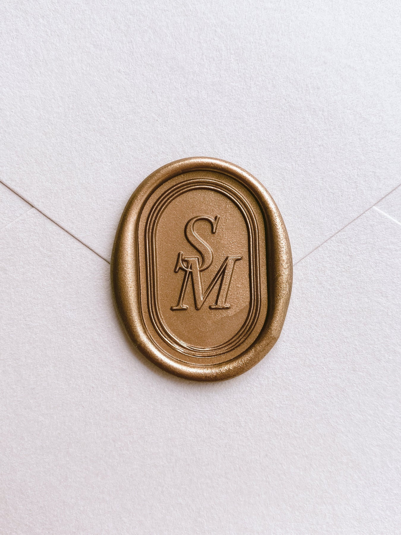The custom wax seal stamp is a versatile canvas that provides endless possibilities for your creativity. Customize this wax stamp with your wedding monogram to add a personal touch to your wedding invitations and day-of stationery or business logo for your brand stationery and packaging. With a custom logo wax stamp, you can create beautiful wax seals of a design that's uniquely yours!